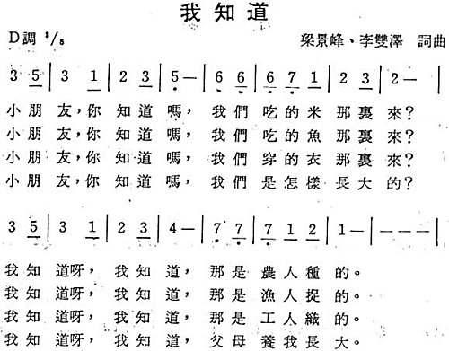 我知道 詞曲:李雙澤、梁景峰