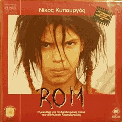 2. MENELAOS KARAMAGHIOLIS[3]執導的紀錄片:羅姆人(ROM)又譯吉普賽青年的電影原聲帶,由希臘當代作曲家NIKOS KYPOURGOS負責配樂,原聲帶第6首樂曲改編自匈牙利的吉普賽樂章,第16首則運用了流行的吉普賽旋律,整張唱片並不足以反映出希臘羅姆人的音樂(只能當做是電影配樂),倒是唱片的封面及內頁劇照非常吸引人,讓人產生想一睹該片的衝動。