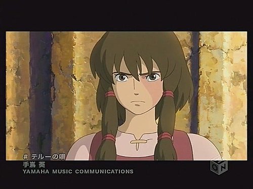 [テルーの唄] 直譯譯為廢墟之歌,官網翻成瑟魯之歌,瑟魯就是片中半臉毀容的女主角,聲優(配音)為手嶌葵,宮崎吾朗慧眼獨具指定她演唱「地海戰記」的歌曲。手嶌葵是一位來自福岡鄉間的17歲少女,無邪純淨的聲音頗能撫慰孤獨人心。